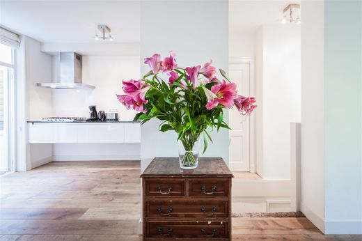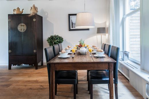 Light and bright living room with wooden floor with sitting area overlooking the Marnixkade.
